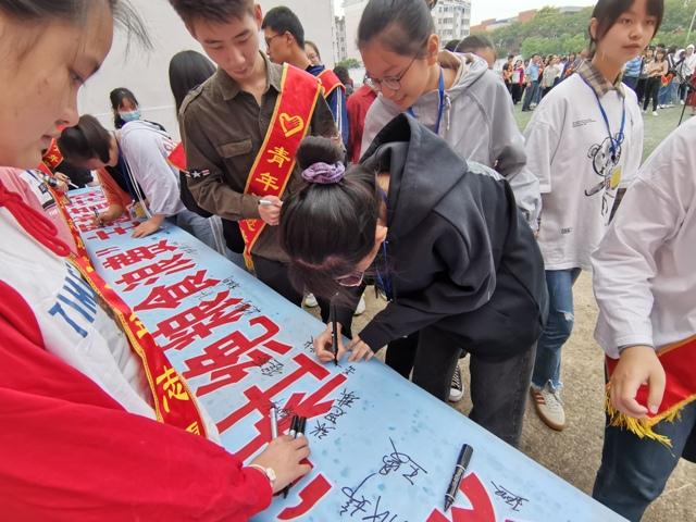 活动最后,学生代表来到台前,在横幅上签下自己的名字,大家郑重承诺将从自身做起,用实际行动表达对节约粮食、反对浪费的响应与支持。