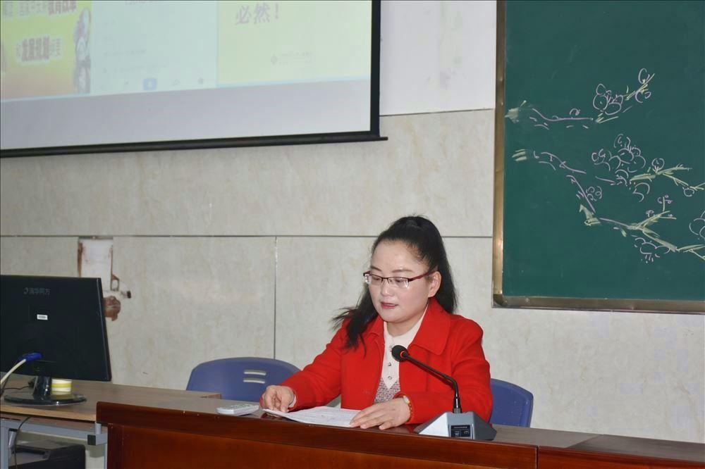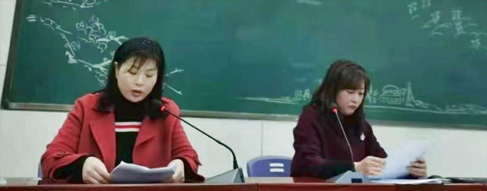 淮南市教研室副主任褚军宣布我校两项市级课题《中小学思政课教育教学校本管理模式的研究》、《线上教学视频的线下再使用时效性研究》开题,并对我校教科研工作给予了高度评价。