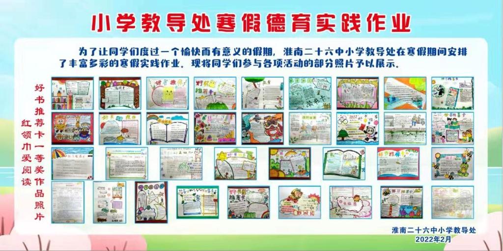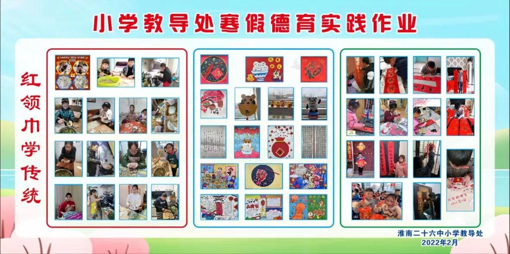2月21日,小学教导处从2000多份德育实践作业中选出近200份优秀作业在校园内进行展示,引来众多老师和同学的观看。这些以“红领巾”为主题的作业分“爱阅读”、“爱健康”、“学传统”、“爱劳动”及征文等五个单元,全景式地展示了小学生丰富多彩的寒假生活。