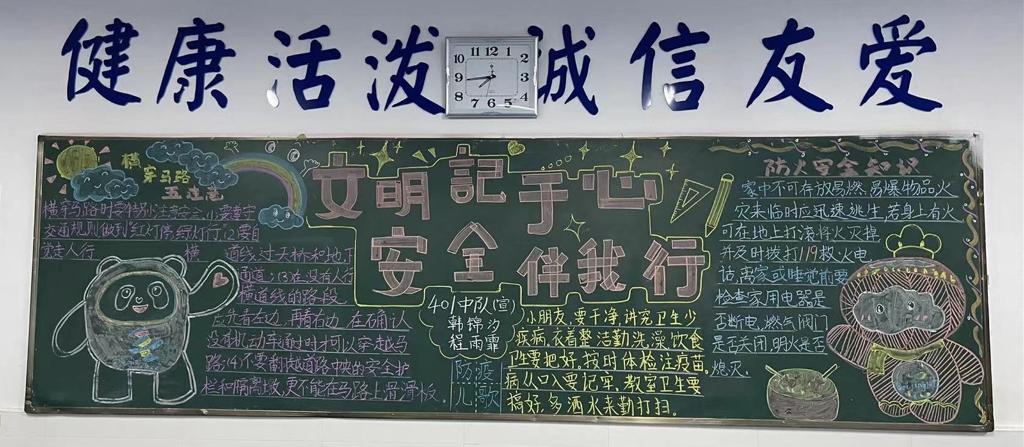 3月10日,小学教导处对三月份“安全、健康、文明”主题黑板报进行检查评比,共评选出20个班级获得一等奖,现公布如下: