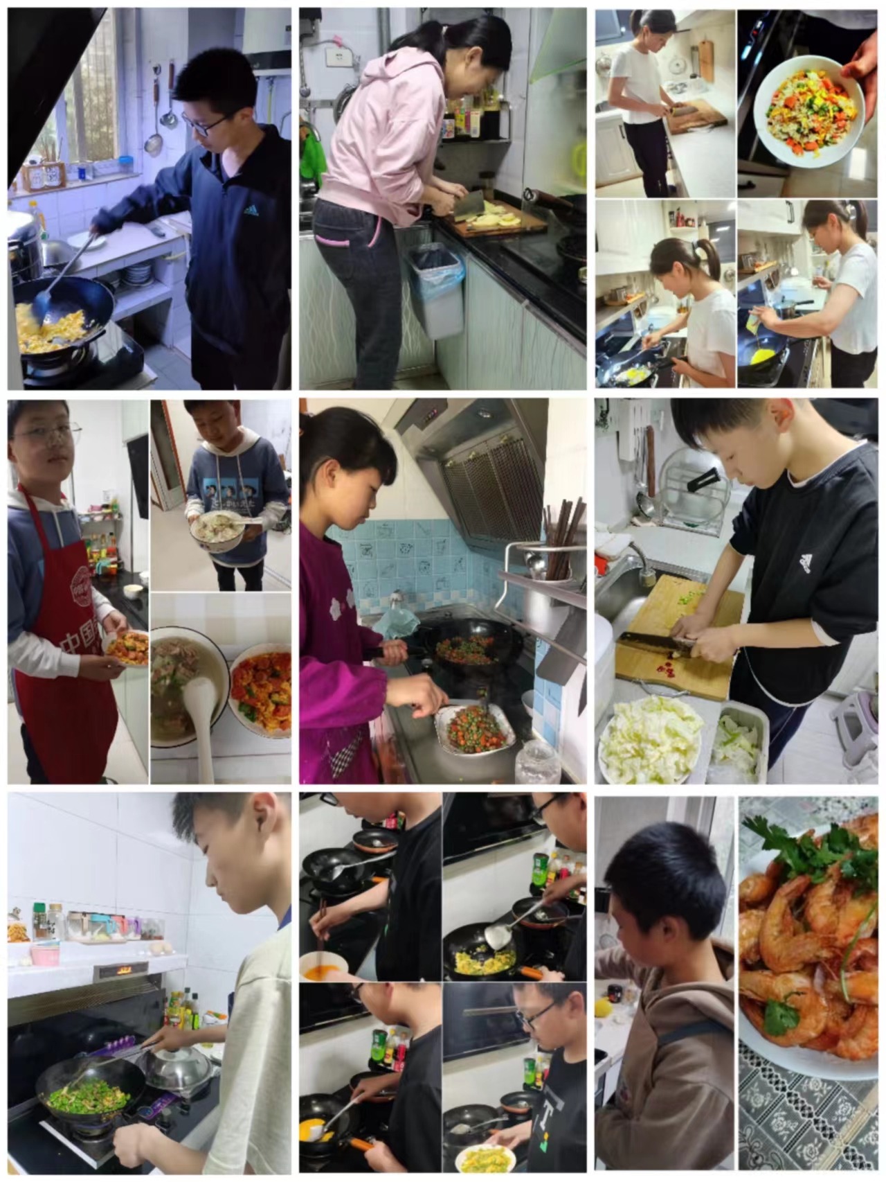 自五一假期始,初中教导处就提前筹划布置,积极动员、营造氛围。孩子们眼中不再只有课本和作业,还会纷纷解锁家务新技能,让学习和生活有滋有味,有声有色。七年级组鼓励学生家里的事情帮着做,开展“家务劳动我也行”主题实践活动,自选1--2项家务,撸起袖子帮忙干,烧菜、洗碗、洗衣、扫地、叠衣被整内务,爱上劳动,懂得感恩。八年级组号召学生不会的事情学着做,学烧一道新菜,体验柴米油盐酱醋茶里的烟火日常,提高厨艺,丰富生活。九年级组要求学生自己的事情自己做,自己的地盘自己管,开展“最美书桌秀”活动,悦劳动,悦自己!