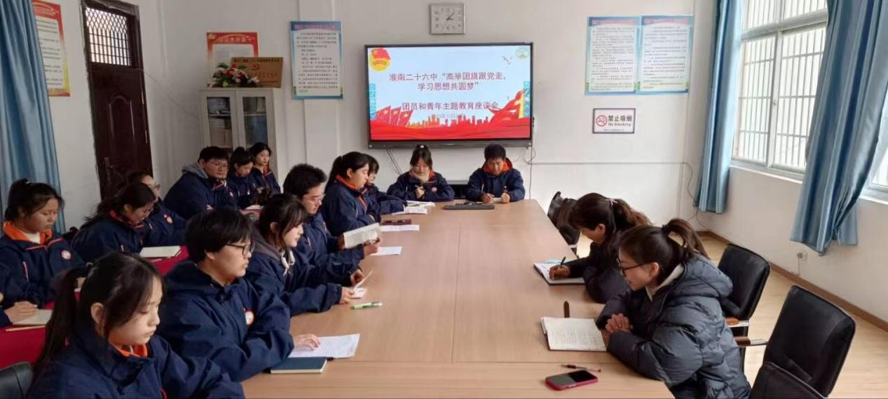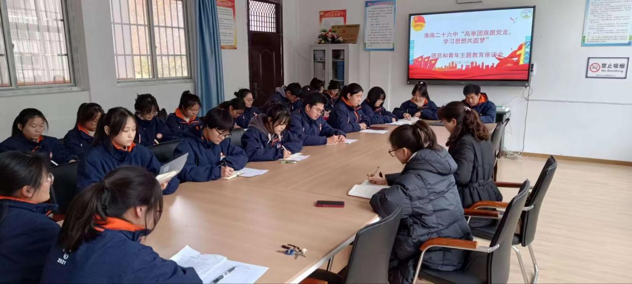 座谈中,团员和学生代表也踊跃发言,同学们积极领悟习近平新时代中国特色社会主义思想的深刻内涵,纷纷表示我们是新时代的中国青年,既生逢其时,也重任在肩,我们一定要努力学习科学文化知识,增强实践能力,树立正确的世界观、人生观、价值观。充分发挥主观能动性,将个人梦与中国梦紧紧的结合起来,勇担时代使命,争做时代弄潮儿。同学们也清楚的认识到只有努力学习,高举团旗跟党走,才能更好的适应时代的发展,才能为早日实现中国梦贡献自己的青春才智!
