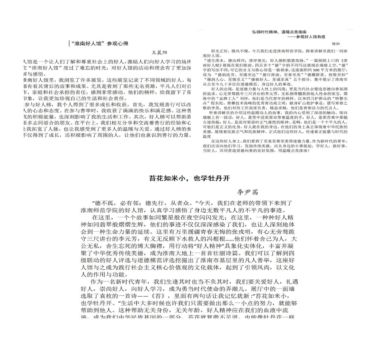 时代进步需要文明风尚引领,社会进步需要道德楷模激励,在参观淮南好人馆后,团员们积极分享参观感受,表示在今后的学习和生活中,要学习好人的凡人善举,服务人民。同时,还要做好小事、管好小节,踏踏实实修好公德、私德,学会感恩、学会助人,用实际行动传承和弘扬好人精神。