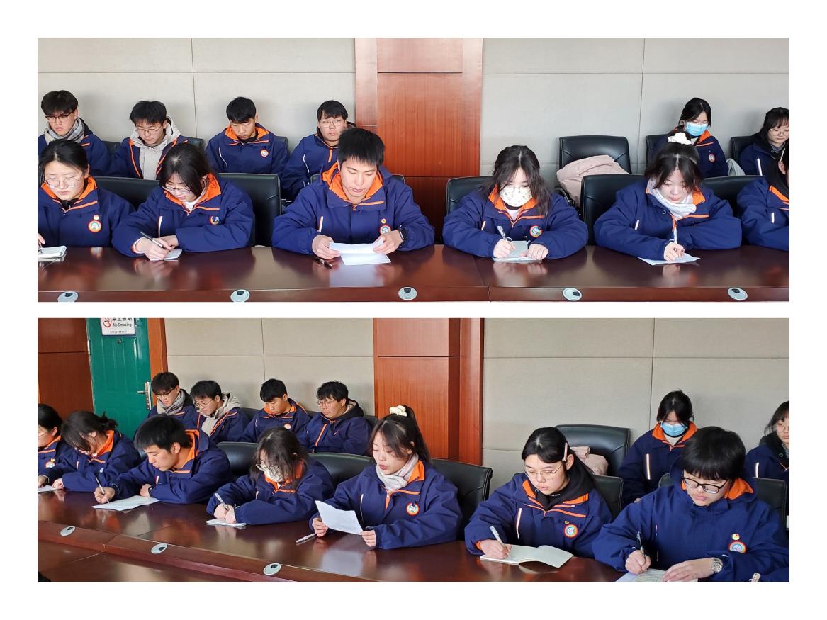 会上,两位团员和青年代表分别作学习实践感悟发言。徐志伟同学作为班级团支部书记,首先报告了本支部团员和青年主题教育的开展情况,对本学期理论学习工作中的不足进行了深刻反思,并提出了具体的改进措施。潘悠然同学作为优秀青年代表,表示应该勇于担当新时代青年使命,以实际行动践行社会主义核心价值观,为实现中华民族伟大复兴的中国梦贡献自己的力量。