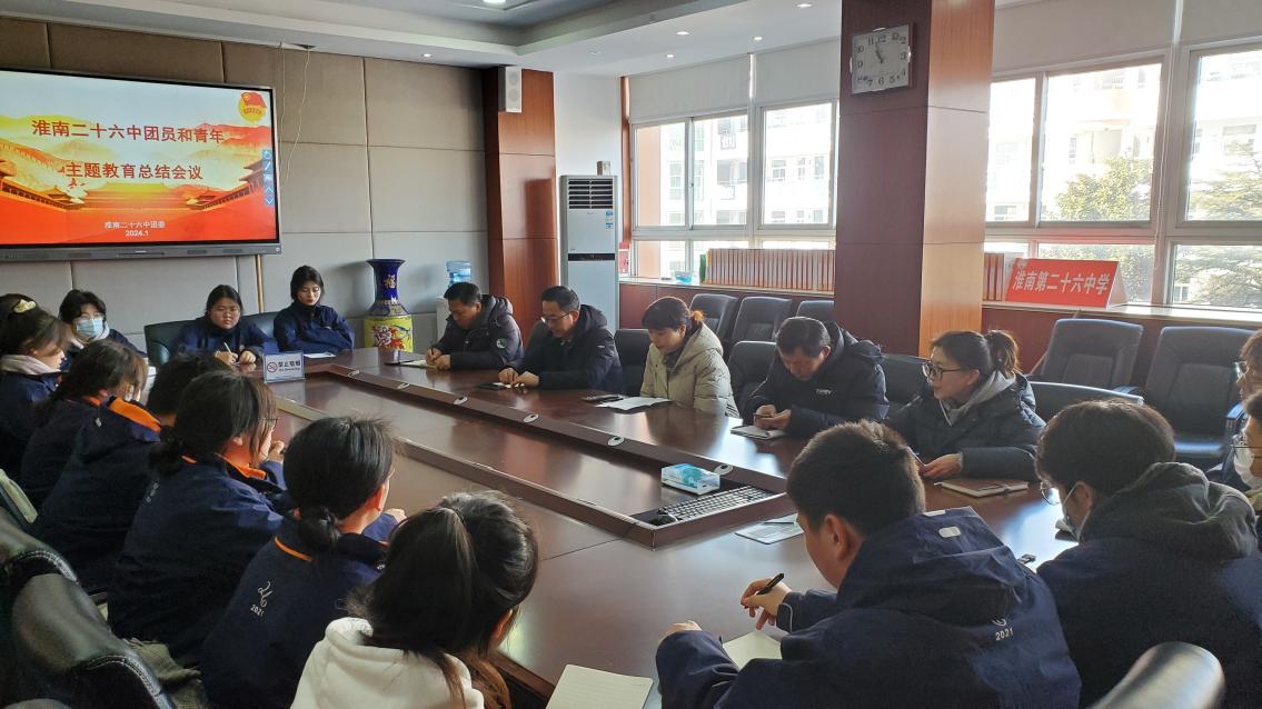 校团委副书记谢芯对学校团员和青年主题教育活动开展情况进行汇报。她回顾总结:自主题教育开展以来,淮南二十六中团委在校党委的指导下牢牢把握学习贯彻习近平新时代中国特色社会主义思想这一鲜明主题主线,突出加强理论学习这个基本任务,围绕四个专题,科学制定落实方案、夯实学习内容、丰富活动载体,在推动广大团员和青年真学、真懂、真新、真用上下功夫,努力把主题教育学习抓出高质量、好效果。
