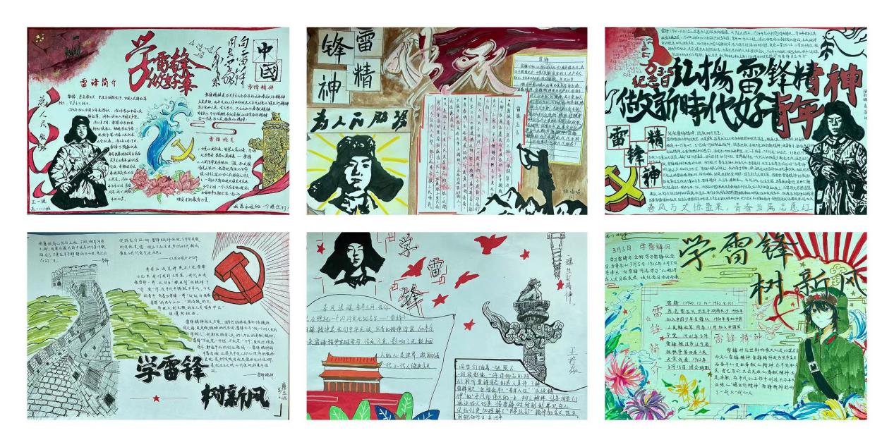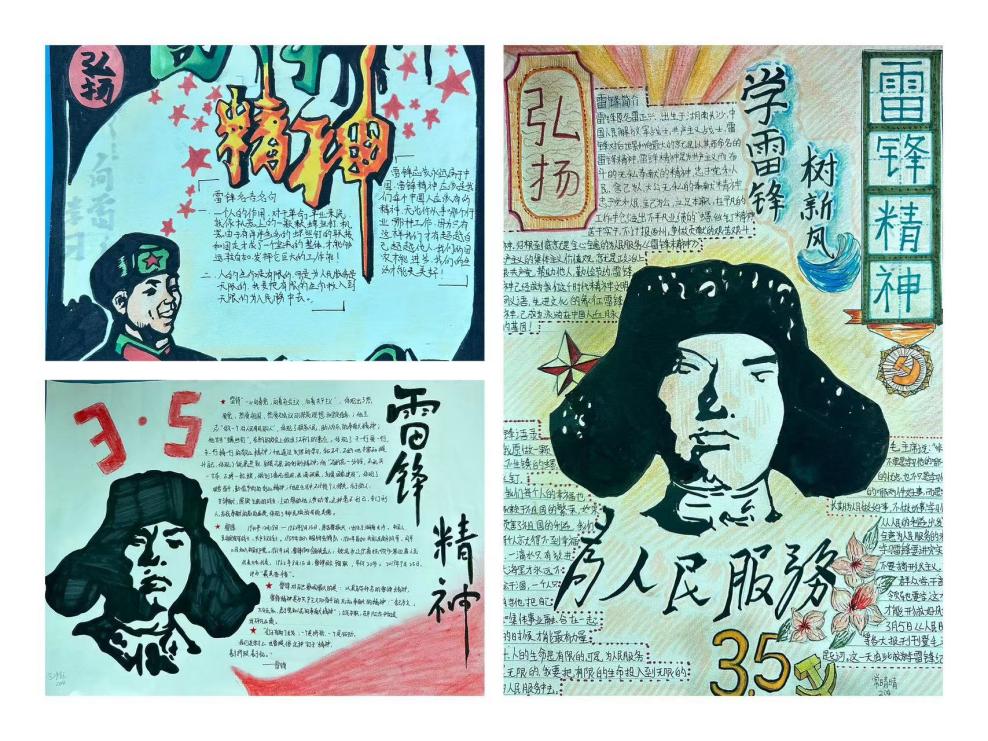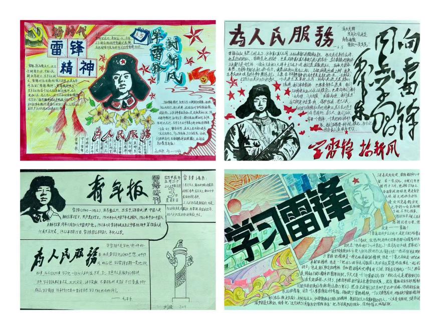 一张张手抄报给我们传递着雷锋那种全心全意为人民服务的精神,那种干一行爱一行,立足岗位艰苦奋斗的螺丝钉精神,那种舍己为人,助人为乐的精神。雷锋,这个熟悉的名字,在我们心中闪烁着不灭的光辉,他那不可磨灭的美好形象,将永远活在我们的心中。