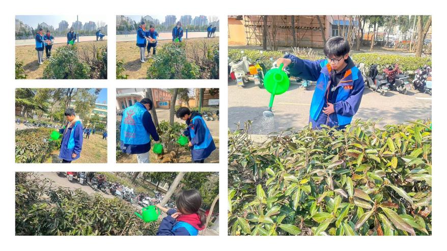 人勤春来早,植绿正当时。为大力弘扬“绿水青山就是金山银山”的绿色发展理念,提高同学们保护环境、爱护自然的意识,校团委于3月12日上午,组织团员青年志愿者开展了植树节劳动实践活动,号召大家积极行动起来,爱绿护绿,争做绿色使者。志愿者们走进校园绿化带,为树木浇水、松土,并将树木周边的垃圾进行清理。