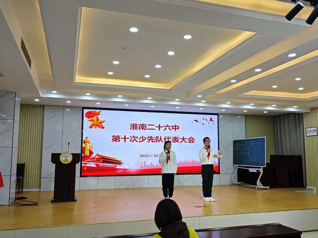 淮南二十六中第十次少代会在嘹亮的《退旗曲》中圆满闭幕。此次少代会不仅为我校少先大队注入了新鲜血液,更为推动学校德育工作和少先队事业高质量发展奠定了坚实基础。