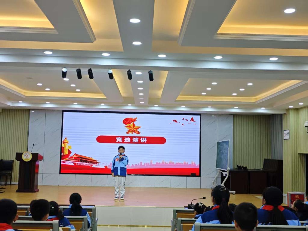 伴随着激昂的《中国少年先锋队队歌》,来自各班的少先队员代表身着整齐的校服,佩戴鲜艳的红领巾向队旗敬礼,他们稚嫩的脸庞上洋溢着坚定与自豪,会场氛围庄重而热烈。